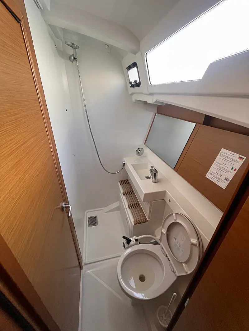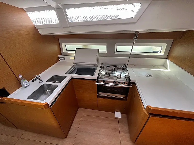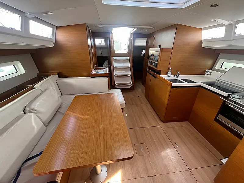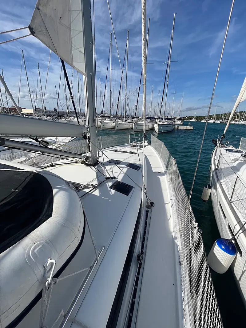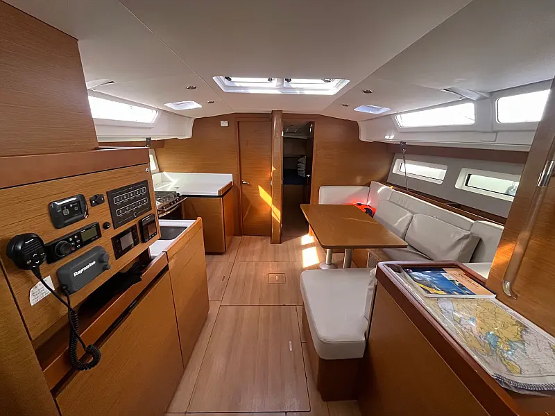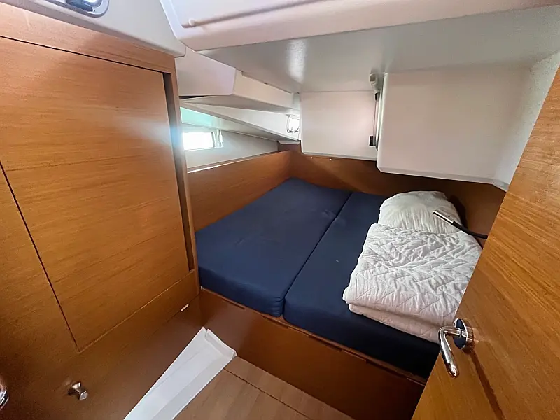 GPS + CHART PLOTTER IN COCKPIT, Engine (1), Solar panels, Blue underwater lights, Bed linen, Cockpit speakers, CD Player, Wind direction indicator, Byboat pump (true), Brush (true), Bilge pump + handle, Charts, Plotters + dividers, Binoculars, Pilot books, Life jackets, First aid kit, Clock, Barometer, Kitchen equipment, Speed log, Electric windlass, Wind instrument, Winch handles (2), Gas bottle (2), Ropes, Boat hook, Air conditioning, Teak cockpit, Bow thruster, Hot water, Cockpit table, Roll Genoa, Bimini top, Sprayhood, Autopilot