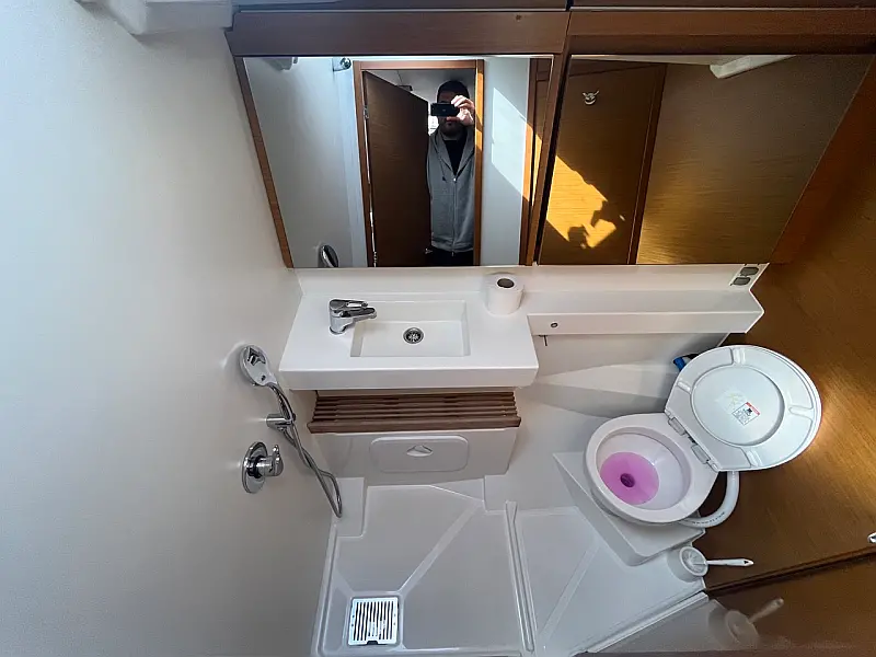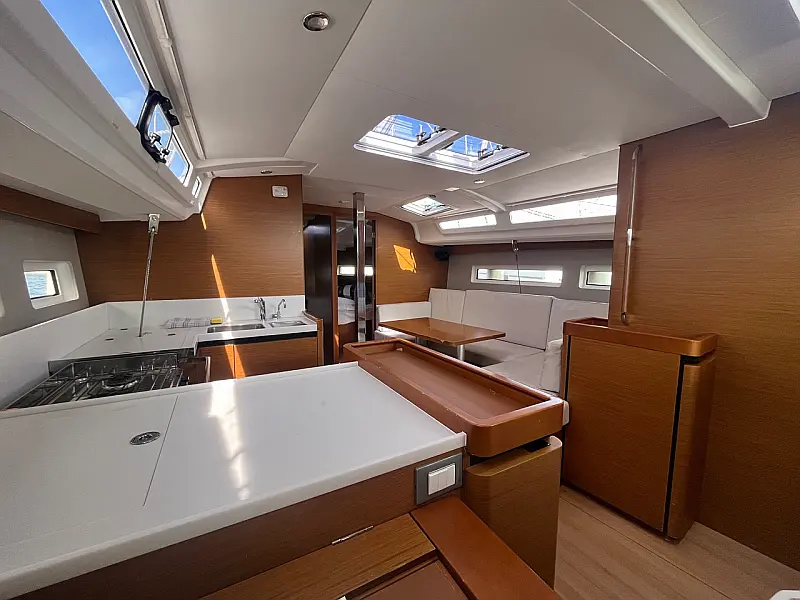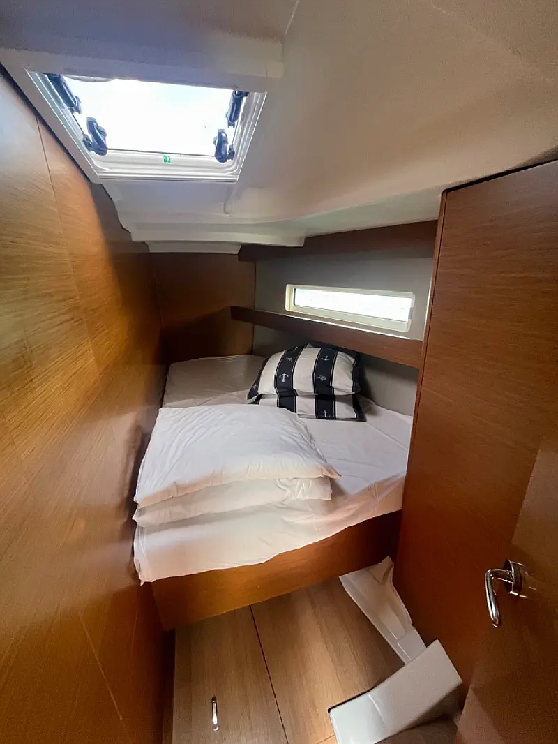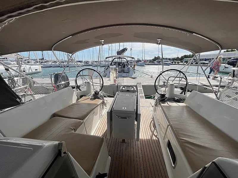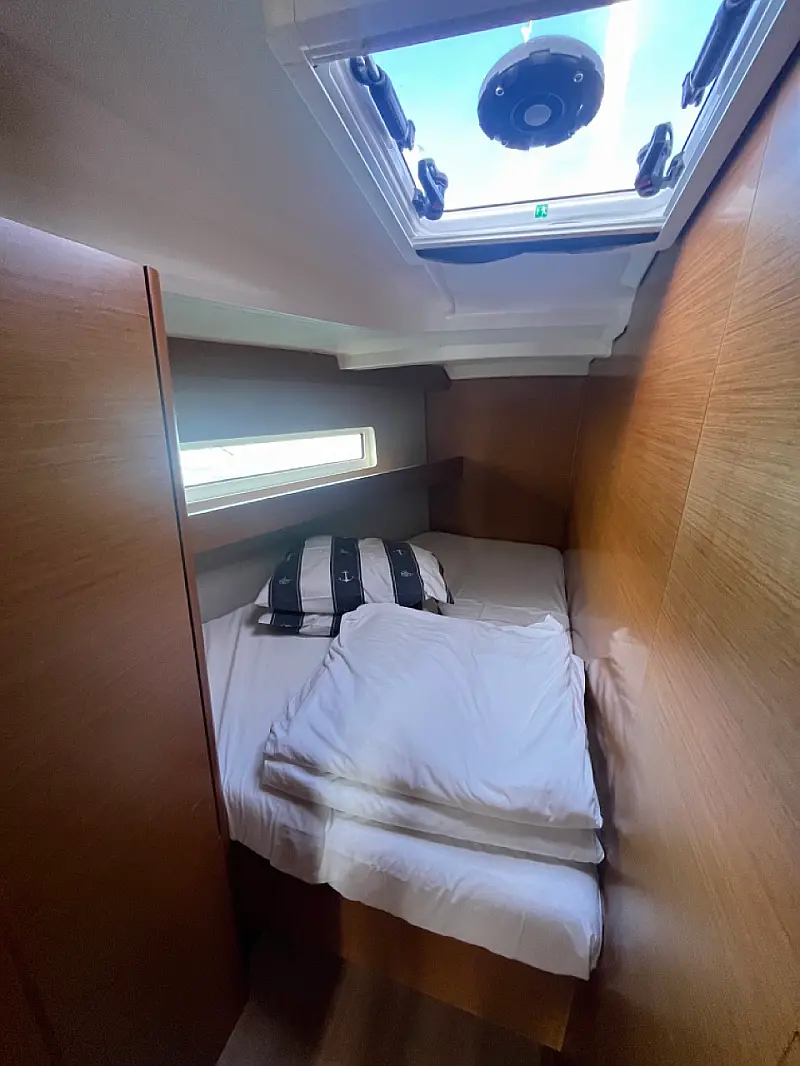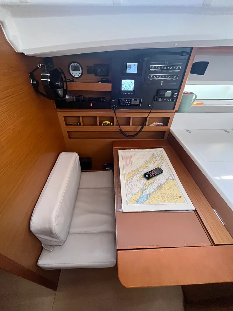 GPS + CHART PLOTTER IN COCKPIT, Engine (1), Solar panels, Blue underwater lights, Bed linen, Cockpit speakers, CD Player, Wind direction indicator, Byboat pump (true), Water hose, Brush (true), Bilge pump + handle, Charts, Plotters + dividers, Pilot books, Life jackets, First aid kit, Clock, Barometer, Kitchen equipment, Speed log, Electric windlass, Wind instrument, Gas bottle (2), Ropes, Boat hook, Air conditioning, Generator, Teak cockpit, Bow thruster, Cockpit table, Roll Genoa, Tender, Bimini top, Sprayhood, Autopilot